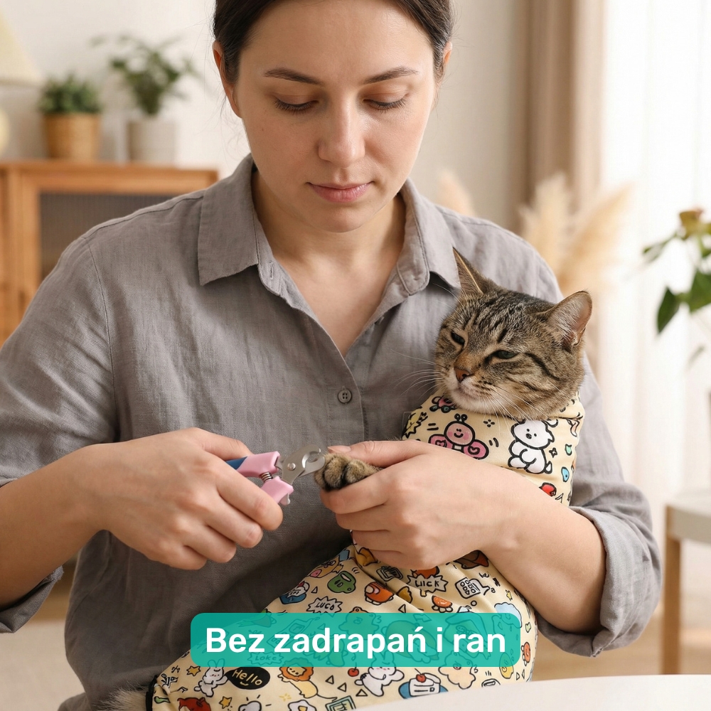 Mój kot przy obcinaniu pazurów był jak demon – syczenie, wyrywanie się, zadrapane ręce za każdym razem. Byłam sceptyczna, ale różnica była ogromna. Po “otuleniu” szybko się wyciszył i pierwszy raz udało się wszystko zrobić spokojnie, bez walki. Teraz pielęgnacja to żaden stres – ani dla niego, ani dla mnie.