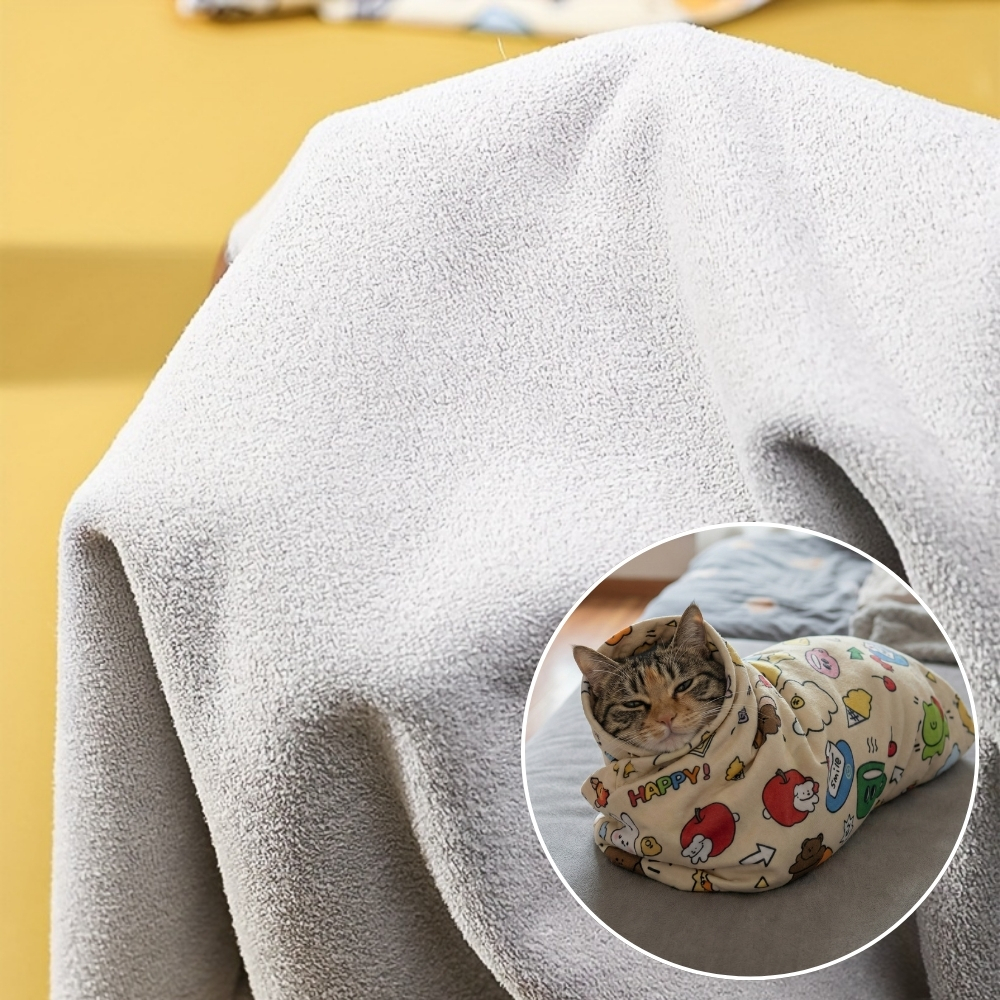 Wystarczy owinąć kota kocykiem, a elastyczny materiał sam dopasuje się do jego sylwetki.